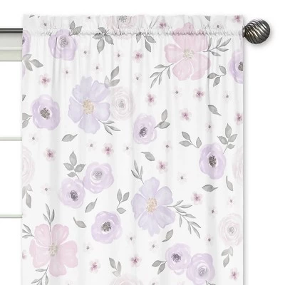 2pc Sweet Jojo Designs Watercolor Floral Window Panels Lavender/Gray