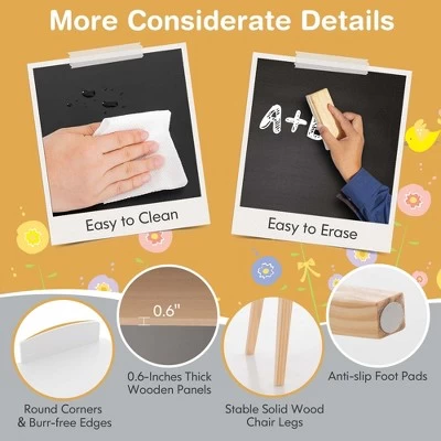 - Kid’s House-shaped Desk & Chair: The house-shaped desk with 28” x 11”(L x W) desktop and ergonomic chair meet kids’ needs of reading, eating, studying or playing. Meanwhile, there is an extra blackboard for drawing or writing, which is great for toddlers’ creativity and imagination stimulation.