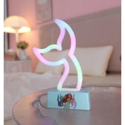 Add a touch of masterpiece to your decor with the Disney Little Mermaid LED neon lamp. Featuring a unique and creative design of the iconic brand, this lamp is the perfect way to light up your child’s bedroom, playroom, or study area. It is an excellent decorative accent and is small enough to fit onto any desk or side table. It features a blue durable base with a decorative colorful design of Little Mermaidās tail. Lamp measures 8.27ā H x 5.55ā W x 1.69ā D. No assembly is required.