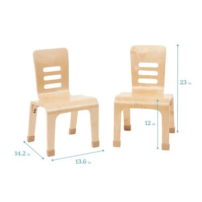 Bentwood Chairs are sturdy and comfortable seats, contoured to encourage healthy posture. Good posture improves circulation, helping one maintain focus and support productivity. These stackable chairs feature a vented back for air circulation and built-in handles to easily arrange. The one-piece design is crafted from birch plywood that is molded into shape creating a durable natural hardwood, sealed with a UV lacquer to protect the wood surface and reduce scratching. Chairs feature smooth rounded edges, angled anti-tip rear legs, and non-scuff boots to protect floors and reduce noise. Easily clean by wiping down with a mild soap and warm water solution, dry thoroughly. Designed for everyday use in daycares, preschools, classrooms, and perfect for the home; maintenance free chairs are fully assembled with no hardware to check or tighten.