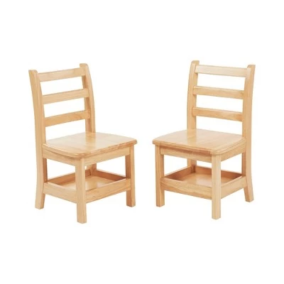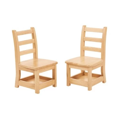 Three-Rung Ladderback Chair with Storage is the perfect seating addition for classrooms, playrooms, or daycares. The ergonomic design encourages little ones to maintain good posture improving circulation and helping maintain focus and productivity. The vented back supports air circulation with built-in handles to easily re-arrange workspaces. Child-sized chairs promote student confidence and independence, and a dedicated workspace for learning encourages children to develop good work habits. A built-in shelf underneath offers storage with raised sides to keep books and supplies within reach and organized to promote a clutter-free learning space. The kidsâ chairs are constructed from durable rubberwood with a tough UV lacquer that seals the wood surface and resists scratching; chairs feature anti-tip rear legs and rounded corners for added safety. A UV inhibitor makes furniture resistant to ultraviolet light and yellowing. Natural rubberwood is extremely durable and will hold up to everyday use in school, home, or an early childhood environment. Seats feature angled back legs to help reduce tipping and nylon glides to protect floors from scratching and scuffing. Pair with an ECR4Kids Hardwood Kids Table and Birch Classroom Furniture to complete the set; sold separately.