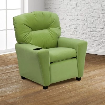 Comfortable seating is a must for all ages and your little ones will enjoy having a “grown up” chair all their own. This generously padded recliner chair for kids is a perfect spot for kids to watch TV, draw on a light-up tracing pad, fine tune their motor skills playing video games or quietly read their favorite book. This kids recliner features a built-in cup holder to help prevent spills and free up busy hands. Is your little munchkin of the four-legged variety? This recliner is the ideal spot for them to curl up with their favorite toy and chew sticks or dog bicuits can be held in the cup-holder to reward good behavior. Safety means everything when it comes to those most important to you. This sturdy kids recliner has a solid hardwood frame that holds up to 90 lbs static weight capacity and only reclines when a child is seated and the footrest is pulled out 1″. Soft foam padding, raised plastic feet and durable microfiber upholstery round out the all-star roster of this reclining kids chair. Just as night follows day, spills and stains are inevitable when there are kids and pets in the home. Quickly and easily spot clean the upholstery with water and a neutral detergent to keep this push back recliner looking great. This cozy recliner for kids will be a great addition to your living room, child’s bedroom or playroom.