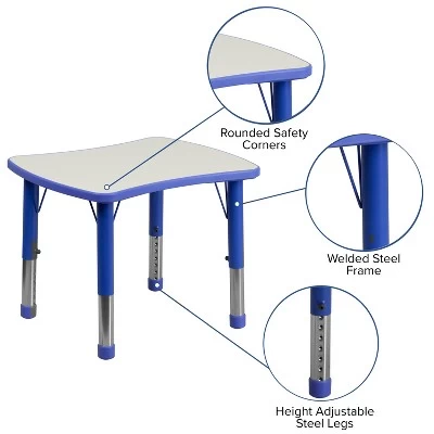 Give your classroom a boost with multi-purpose kids tables for learning, crafting and snack time. Perfect as a classroom table, the safety rounded corners reduce injury around rambunctious toddlers. The laminate top and plastic edge material blend seamlessly. The neutral tone focuses children on learning assignments. Adjustable height legs give you the flexibility to raise or lower to accommodate kids up to the age of 7. Children appreciate having their own area within the common areas of the home. This activity table serves as a play table or kids dining table. Host cheerful birthday and dinner parties around this rectangular plastic table that accommodates up to 4 kids on each side. Don’t let spills ruin the fun, the low maintenance top with its adorable shape is easy to clean. Boasting a neutral finish this play table is suitable for girls and boys. This plastic table is heavy-duty for use in preschools, daycares and playrooms. Pair with our natural plastic stackable school chairs for a complete table and chair ensemble. Additional Features: Recommended Seat Height: 6.5-14″H, Recommended Seating Capacity: 4 Children, Recommended Grade Level: Preschool – 2nd Grade, Ideal for use in the home, classroom, preschool, daycare, church or playroom.