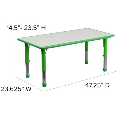 Flash Furniture 23.625″W X 47.25″L Rectangular Plastic Height Adjustable Activity Table Set With 4 Chairs