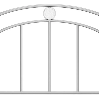 - Featuring arched panels with clean lines and metal posts in a silver finish