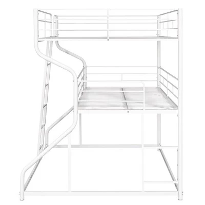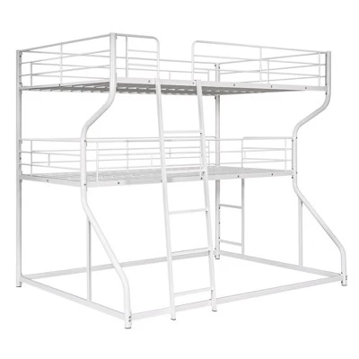 Who wants two bunk beds when you can have three? The ModernLuxe Metal Triple Bunk Bed was created for the ultimate small-space living sleepover. Bold craftsmanship and a space-saving design make this white/black triple bunk bed perfect for a guest room. A sleek, angled ladder allows easy access to the top bunks, while full-length guardrails and secured slats ensure long-lasting durability. The metal slats allow for mattress support and ventilation to extend the life of your mattress by keeping it fresher, and longer.