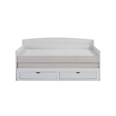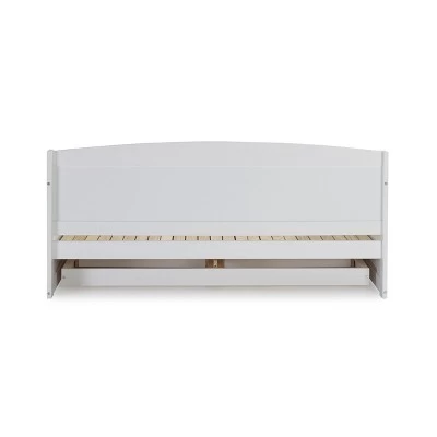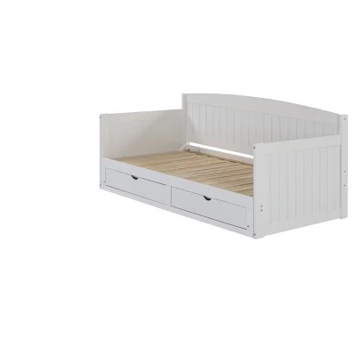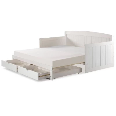 The Harmony Daybed is a perfect space-saving bed for your guests, your child’s room or anywhere you need more sleeping space! Constructed from Brazilian Pine, our furniture is meant to be stylish and durable. This bed requires two twin-size mattresses, not included. The two mattresses stack on top of each other while the bed is in twin-position. We suggest two twin mattresses that are 4-6″H so that some of the bed frame will still show. When you pull-out the bed you will slide one mattress over to the extended side and the bed will be level to a king-size; a unique style of a trundle bed. The drawers will also extend so you can still access them.
