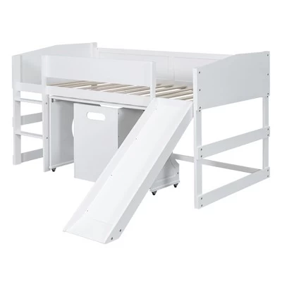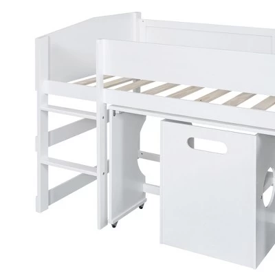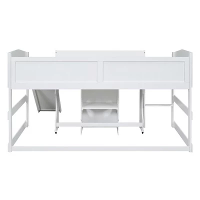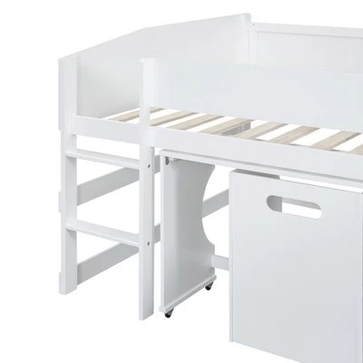 It adopts the loft structure design, enjoys the space below, and comes with a portable desk. When the desk is needed, simply unfold it from under the loft for more work space for your family to play and let their imaginations run wild. A built-in 2-stage ladder provides easy access to the bed with a full-length safety rail.