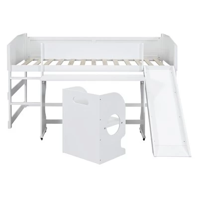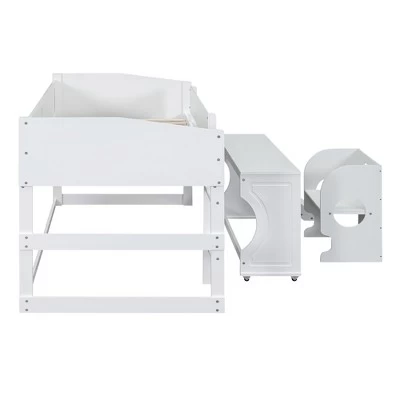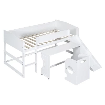 - ăMultifunctional StyleăThis modular furniture includes a loft bed, a freestanding desk with casters, a chair, and a slide. Tables and chairs are free-standing, they can accompany children for a long time.