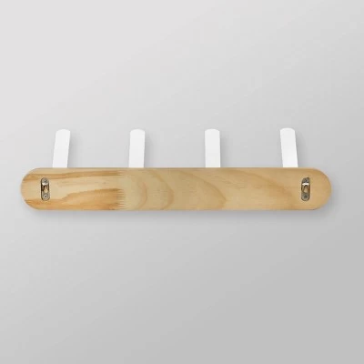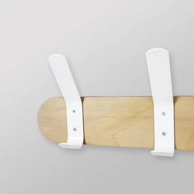 Add a touch of modern style and organization to your child’s bedroom or playroom with these Metal and Wood Hanging Wall Hooks from Pillowfort™. Featuring a wooden base in a rectangle shape with curved sides, the white angled hooks can help them hang sweatshirts, towels or other items. This hanging organizer easily integrates into a variety of decor styles, and will help your child learn to keep their areas tidy and organized.