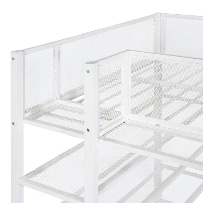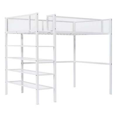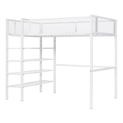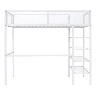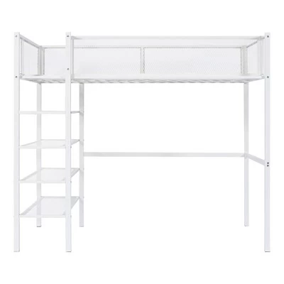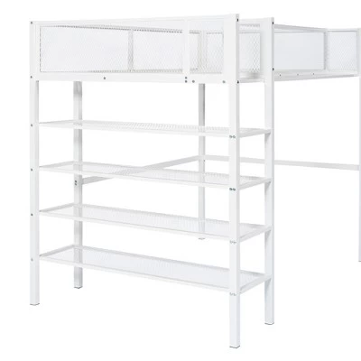 This Twin Size Metal Loft Bed with Storage is crafted from sturdy metal with a clean silhouette to match any room decor. It has 4 tiers of open shelves and storage shelves next to the bed rail. You can easily pick up things without getting out of bed. With this collection, you can turn any space into a workstation, reading nook or lounge area.