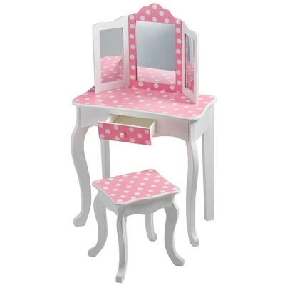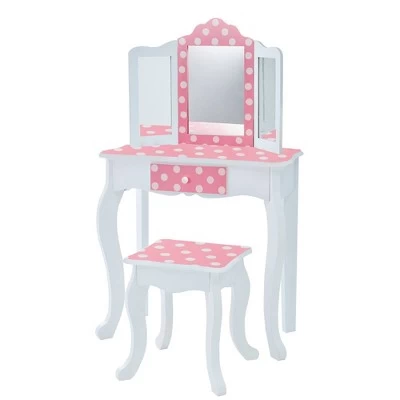 Polka Dot Fashion Prints Vanity Table & Stool Set Pink – Teamson Kids