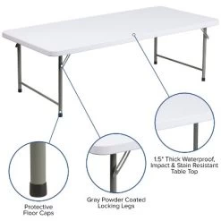 Emma And Oliver 4.93-Foot Kid’s Granite White Plastic Folding Activity Table – Play Table