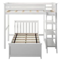 Max & Lily Loft Bed Twin Size Solid Wood Platform Bed Frame For Kids With Storage Drawer