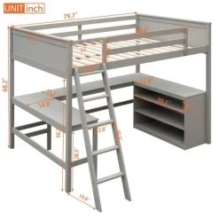 Full Size Loft Bed With Multifunction Shelves And Under-Bed Desk – ModernLuxe