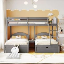 Full Over Twin-Twin Triple Bunk Bed With Drawers And Staircase – ModernLuxe