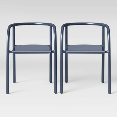 Your kiddo will sit comfortably while working away on their homework with this Set of 2 Metal Activity Chairs from Pillowfort™. Crafted from steel for plenty of use, these desk chairs showcase a clean-lined silhouette in a solid black finish to amp up your kiddo’s room, while blending effortlessly with any decor style. Plus, the chairs are designed with arms to maximize their sitting comfort. Make sure your kiddo is comfortable as they sit to study with these desk chairs.