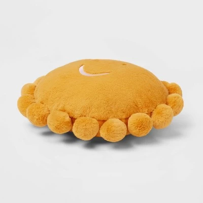 Add a cheerful accent to your child’s bedroom decor with this Sunshine Pillow with Poms from Pillowfort™. Made from super-soft plush fabric in an orange hue, this round pillow has a sun design with a smiley face with white embroidered features and coordinating pompoms on the edge. They’ll love to add this fun pillow to their sleeping space to create a comfy, friendly setting.