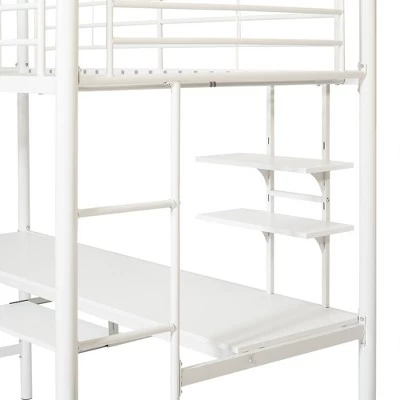 Boost bedroom space with this innovative, room saving, Kids Workstation Bunk Bed Frame from Saracina Home. A workstation smoothly integrates into the frame with a seamless powder coat finish. You can transform the lower level into a study haven, a mini library, a collection display, an entertainment nook, or whatever else youâd love to create with the multilevel shelving space! An essential find for compact living, this small space friendly piece is ideal for apartments, tiny houses, dorms, or kidâs rooms. Let your imagination run wild and keep your bedroom space creative.