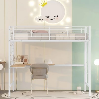 Crafted from sturdy metal, this loft bed has a clean silhouette that will complement any room decor. With safety in mind, this loft bed has a ladder integrated into the frame for easy climbing up and down. It also includes full-length rails to ensure your child sleeps safely at night. With this collection, you can turn any space into a workstation, reading nook or craft area.