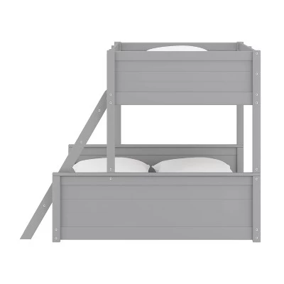 - Stylish Twin Over Full Gray Wood Bunk Bed with shiplap design
