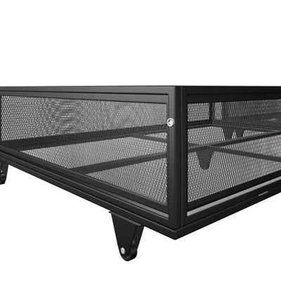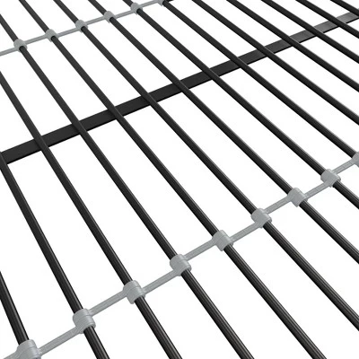 - Made with sturdy metal and mesh details, it includes 11.5-inch full-length guardrails, an integrated ladder for safe climbing and secured metal slats. No foundation required