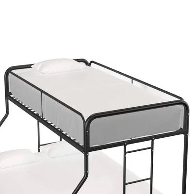 - Accommodates one standard twin size mattress and one standard full size mattress (sold separately). Maximum mattress height for top bunk is 6 inches.