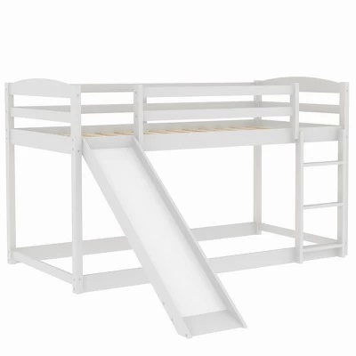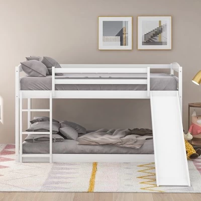 - [Ladders & Slides] Unique and multifunctional design that everyone will love, it can turn your living room into a game room. But it can be easily removed when no longer needed. A sturdy ladder provides easy access to the bed for safe and sturdy climbing, as well as a safety rail for the upper bunk. The slide and ladder are convertible, they can both be placed left or right.