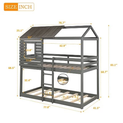 - [Playhouse Inspired] Featuring a pitched roof and wall section with a window, this unique and intricately designed bunk bed creates a fun and adorable space that not only serves as a comfortable sleeping area but also double as a space for you to play and fun.