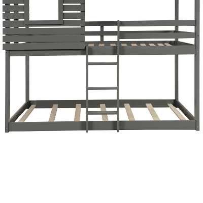 Bunk beds are a lot of fun, and theyâre also super practical, but if you want a bunk bed with elegance and style – this one has it in spades. Featuring a pitched roof and playhouse-inspired wall with a window, this bunk bed doubles as a semi-enclosed play place perfect for your family to study, watch TV or explore their imaginations. With guardrails, a ladder, and a sturdy pine frame, this bunk bed offers a safe space for you to get a good nightâs sleep.