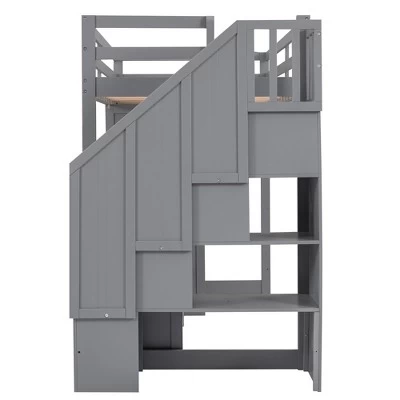 - [Large Storage Space] This loft bed is made up of several pieces: a bed, a desk, a wardrobe, three drawers, an open storage cabinet, and even a storage staircase! And the attached staircase also offers storage space for you.