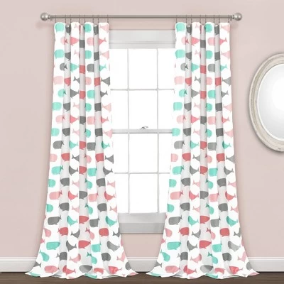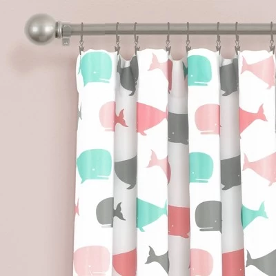7652631152″x84″ Whale Room Darkening Window Curtain Panel Set Pink/Aqua – Lush Décor