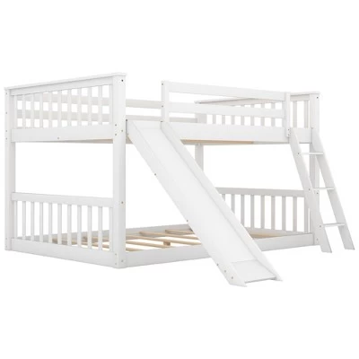 This bunk bed comes with a space-saving low bunk design, completely suitable for small spaces and also safe for you. The ladder rounded edges provide easy access to the top bed and the included slide offers extra fun. For added convenience, the ladder and slide are reversible and removable. The headboards features stylish and simple vertical stripes design, adding modern style to your room. Donât hesitate to buy this bed from us, we can guarantee you a great experience.